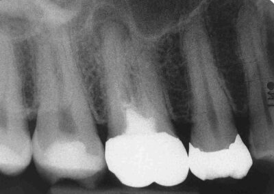 Völlig egal, wie lange das röntgenologisch als apikale Aufhellung dokumentierte „Gleichgewicht des Schreckens“, also die Pattsituation zwischen Angriff der Erreger und Verteidigung durch das Immunsystems an der Wurzelspitze, besteht. Wenn es gelingt, Zugang zu schaffen, gelingt bei indikationsgerechter Behandlung auch die Ausheilung. Und das voraussagbar in einem Prozentsatz von sehr nahe bei 100%. Würde man hier unter Anwendung des aktuell gelehrten Protokolls nach dem sogenannten Goldstandard behandeln, könnten Behandler und Patient allenfalls mit einer Erfolgsquote zwischen nahe bei 60% rechnen.