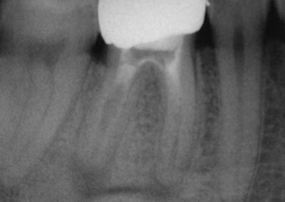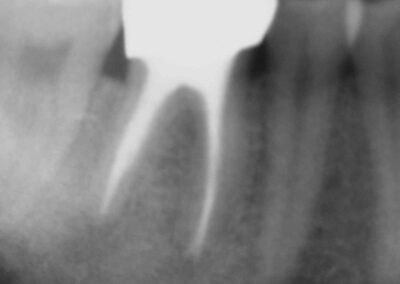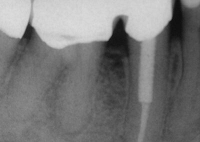 Auf der Basis einer sorgfältigen Evaluation unserer Fälle können wir ganz im Gegensatz dazu aussagen, dass wir in diesen Fällen mit unserem Endodontie-Protokoll eine Quote röntgenologisch knochendichter Ausheilung von sehr nahe an 100% erreichen. Dies gilt auch für bereits wurzelspitzenresezierte Zähne, die exazerbieren und keine Längsfraktur aufweisen.